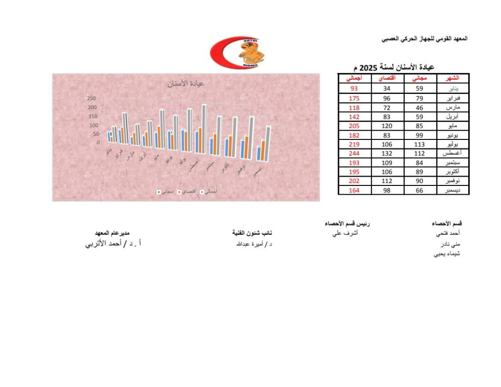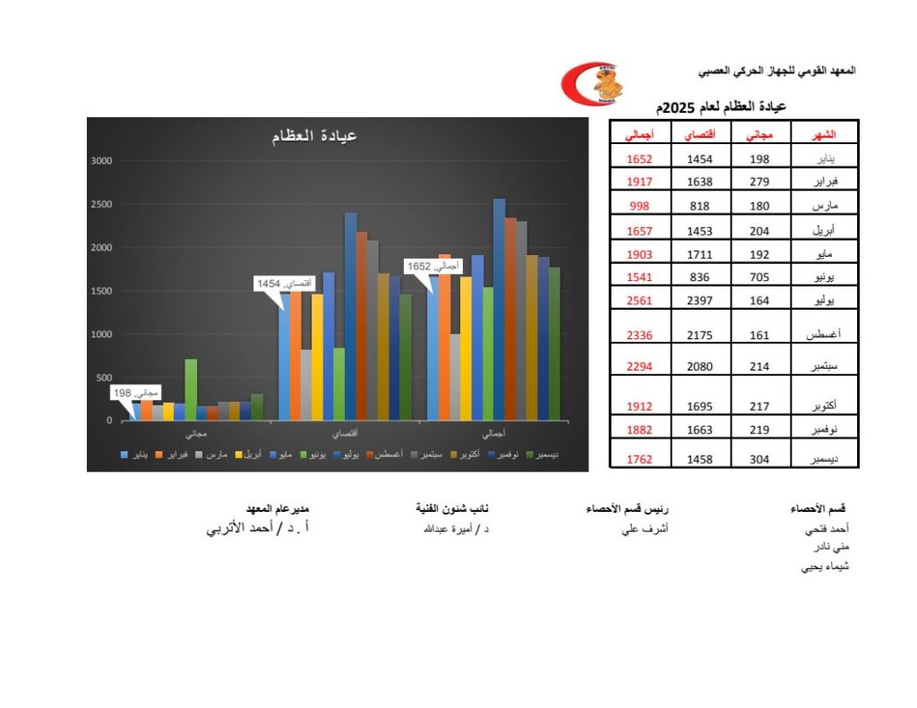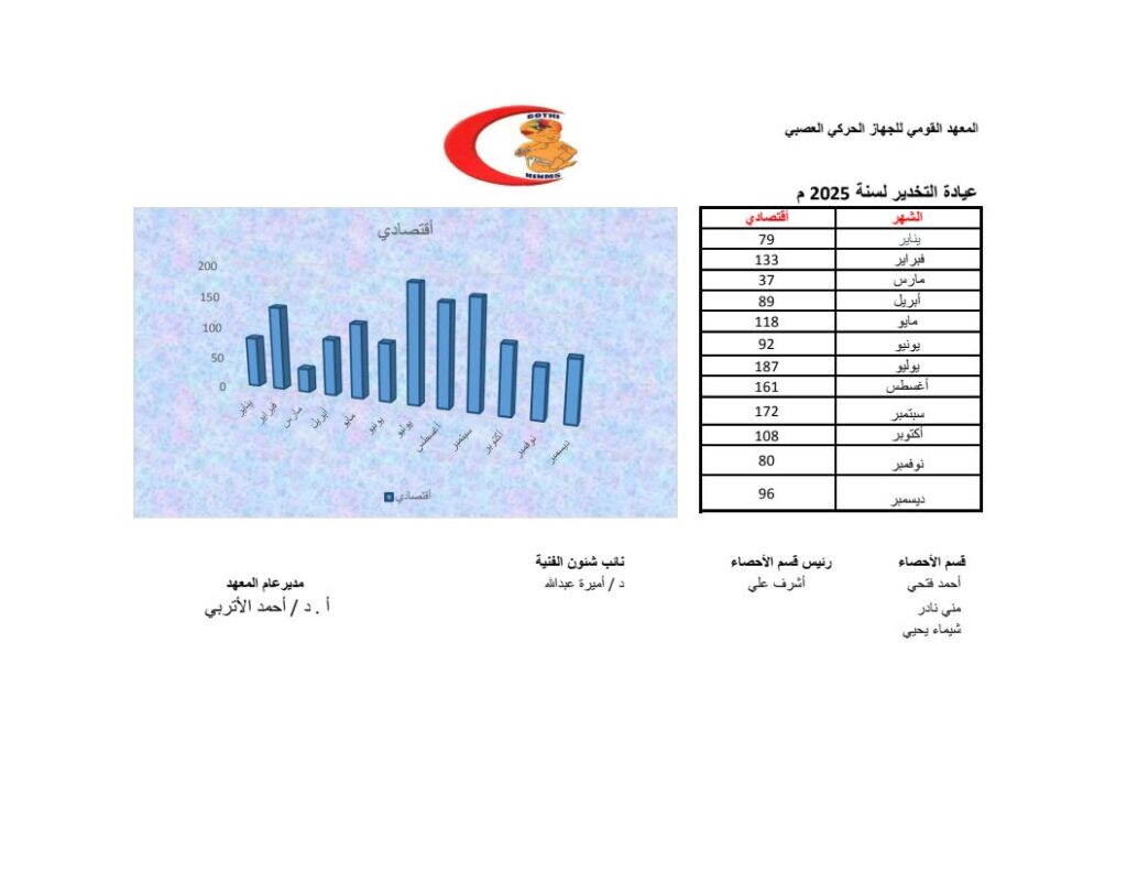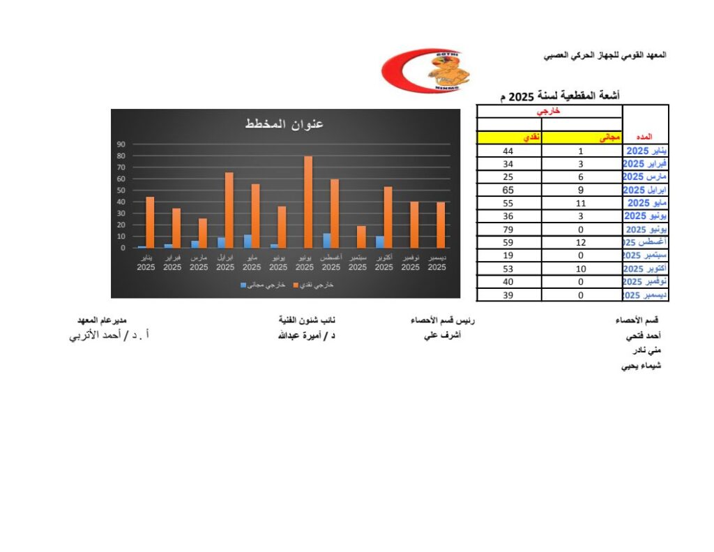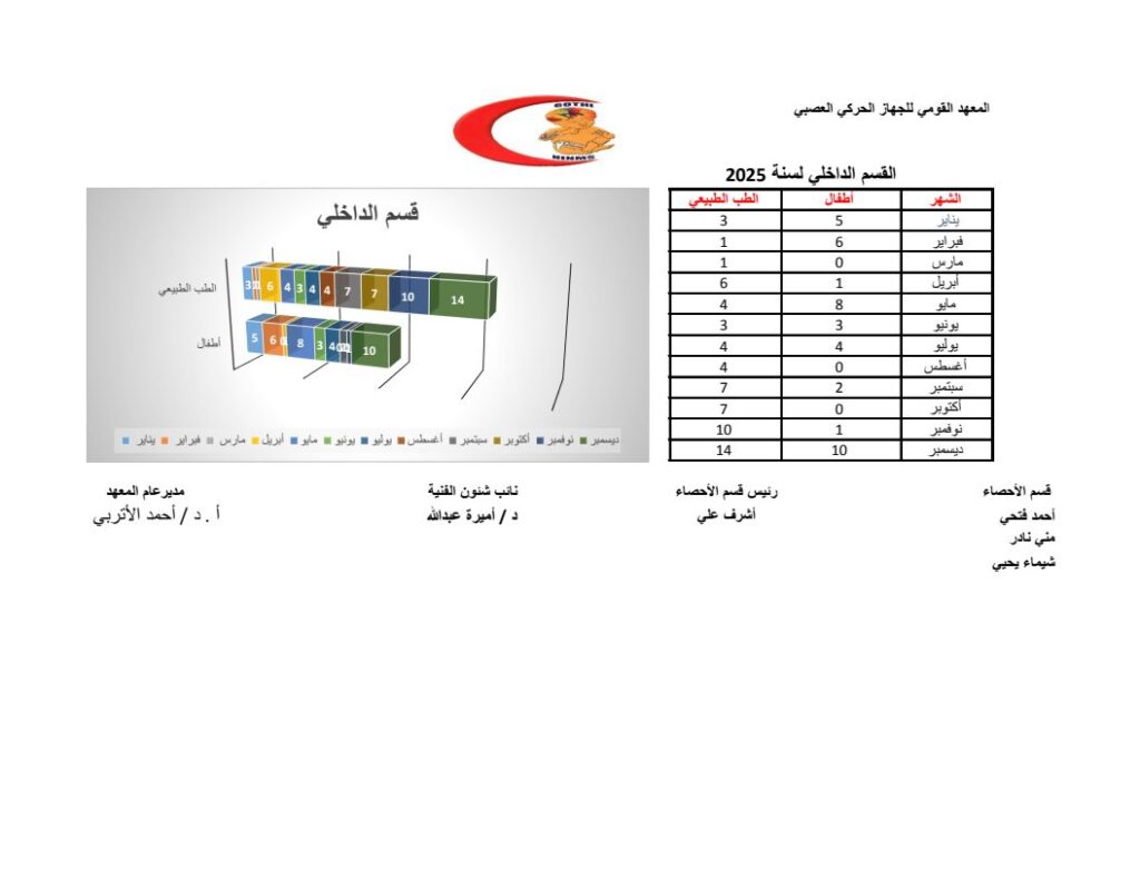 احصائيات من شهر يناير الي شهر ديسمبر 2025 لجميع اقسام المعهد