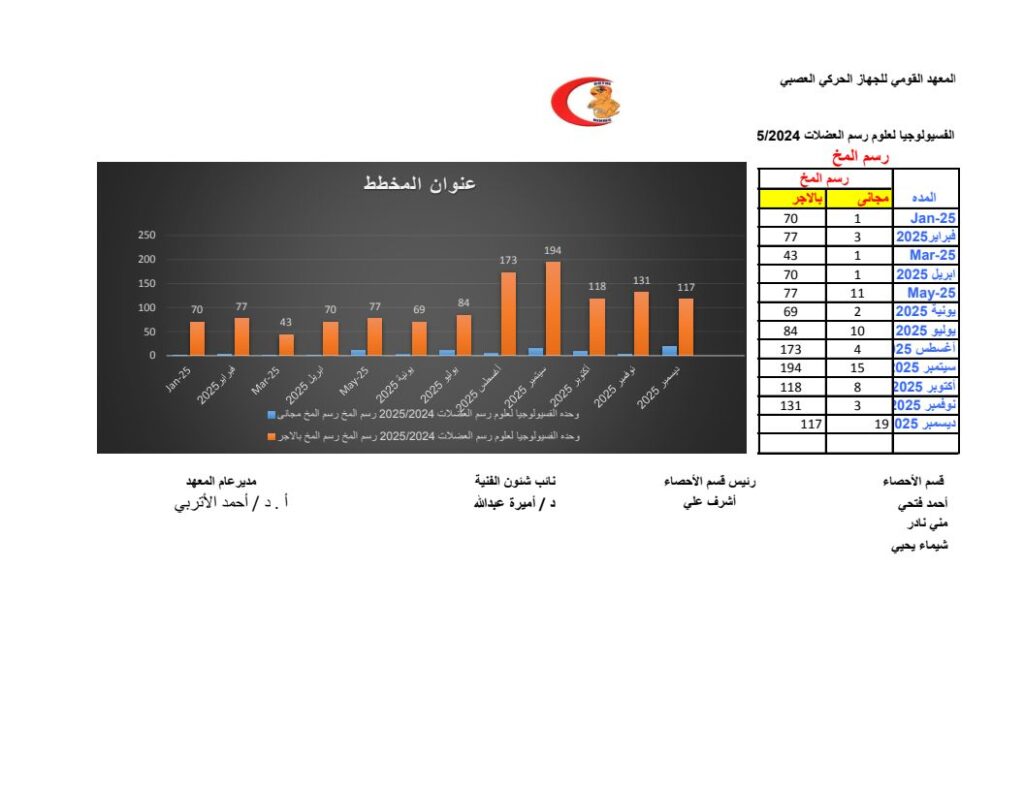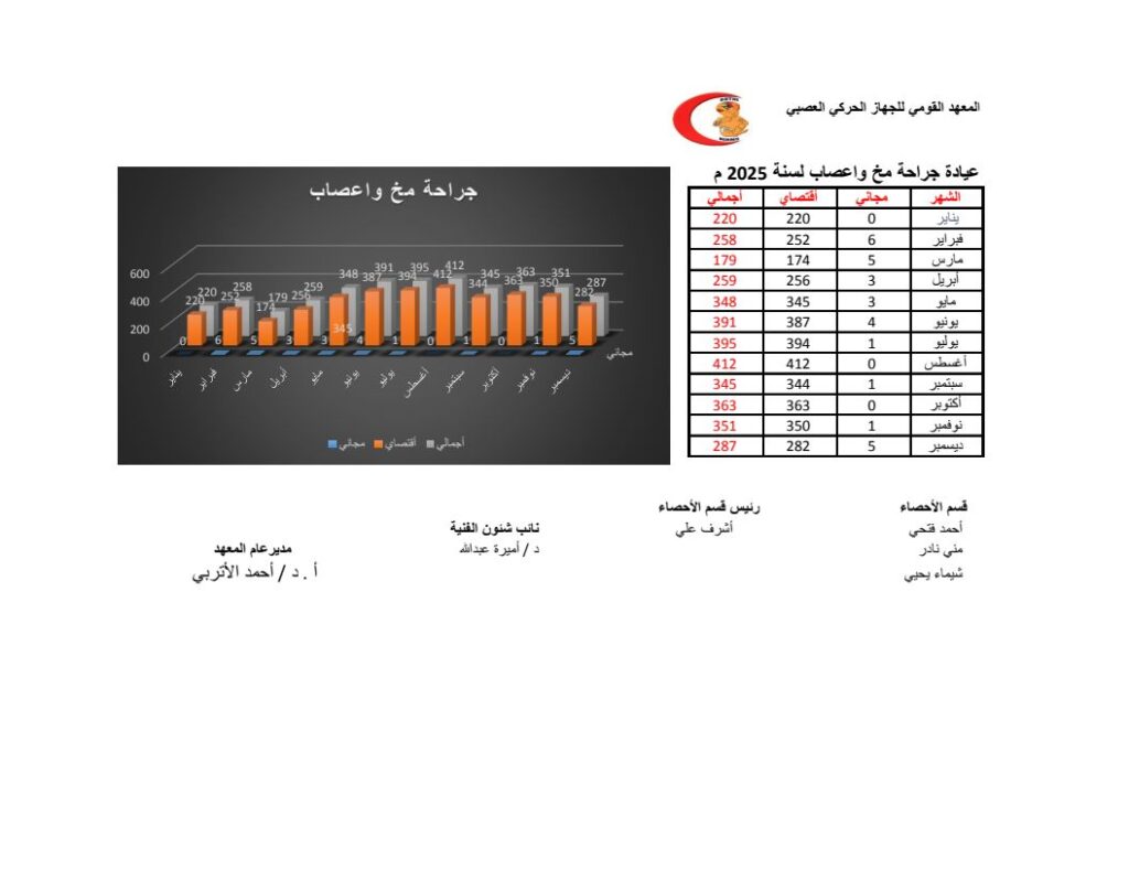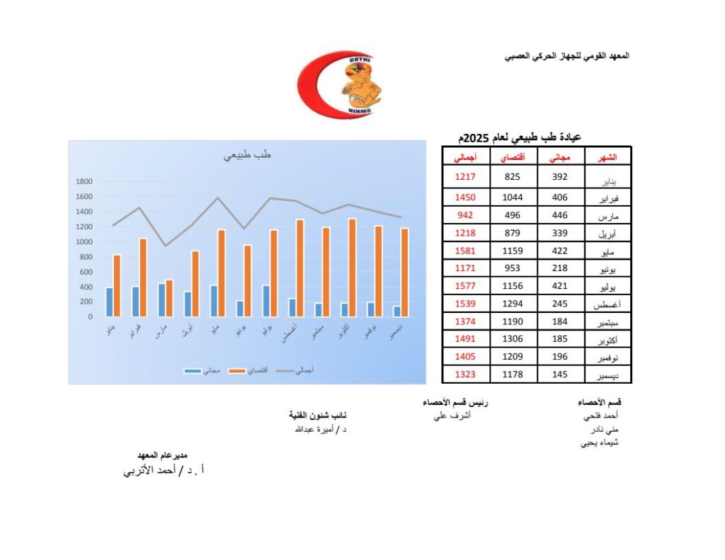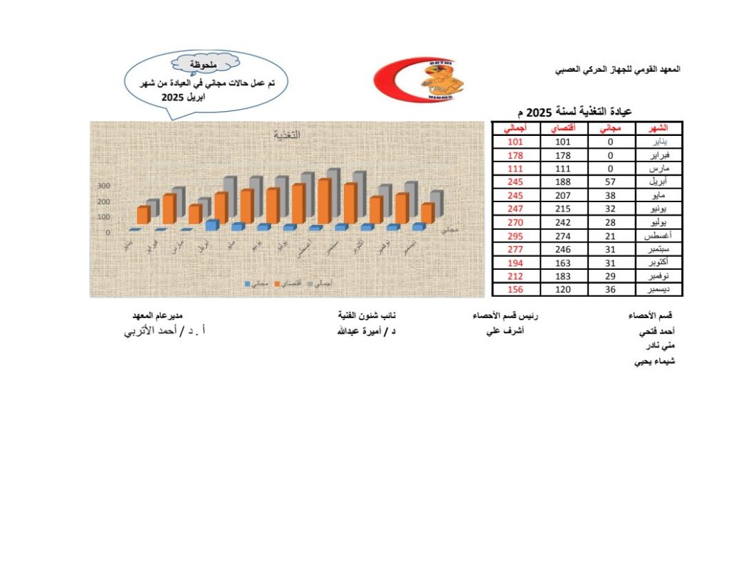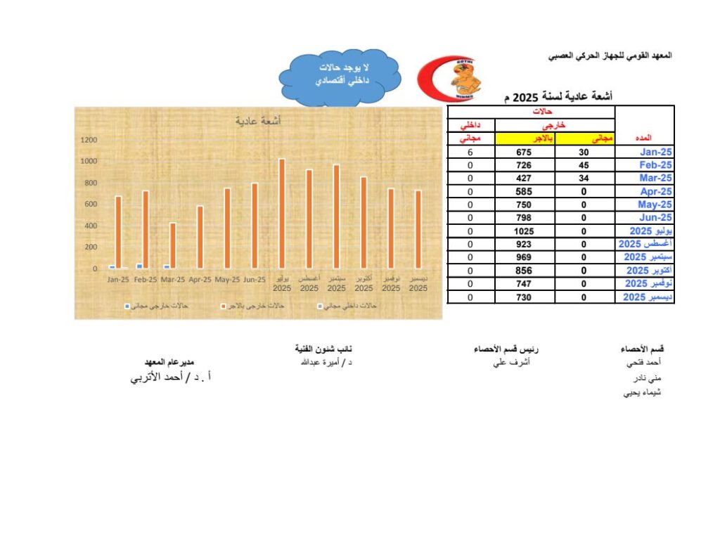 احصائيات من شهر يناير الي شهر ديسمبر 2025 لجميع اقسام المعهد